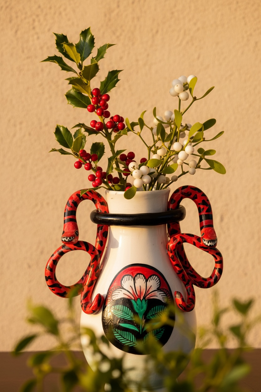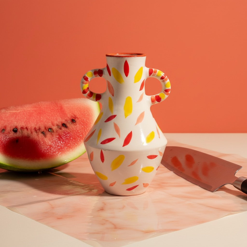 Colección de edición limitada. Piezas escultóricas en barro rojo. Modeladas y pintadas a mano. Formas contundentes. Colores intensos. Acabados únicos. Cerámica contemporánea concebida como objeto de colección.