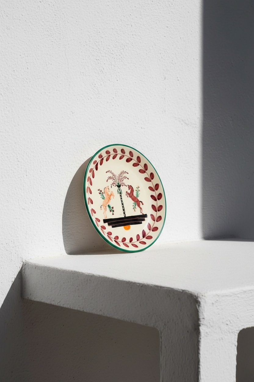 Pieza de alfarería, hecha a mano en barro rojo y pintada a mano
