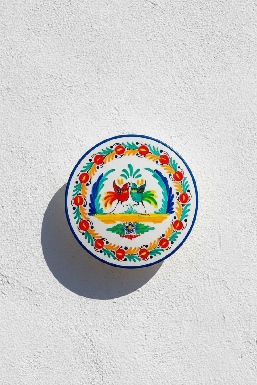 Pieza de alfarería, hecha a mano en barro rojo y pintada a mano